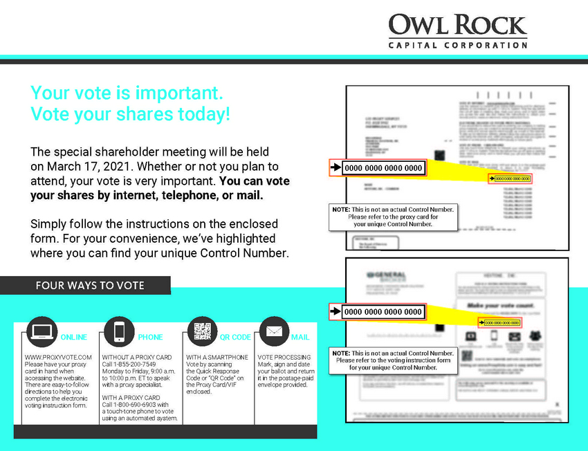 and (ii) the Adjournment ProposalFellow Shareholder,On March 17, 2021, Owl Rock Capital Corporation (“ORCC”) will