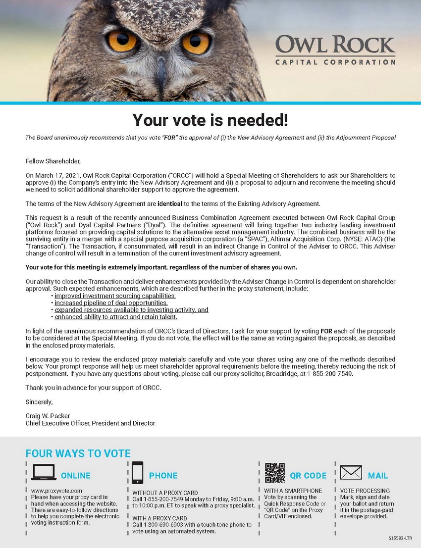 Broadridge, at 1-855-200-7549.Thank you in advance for your support of ORCC. Sincerely, Craig W. Packer Chief Executive Officer,