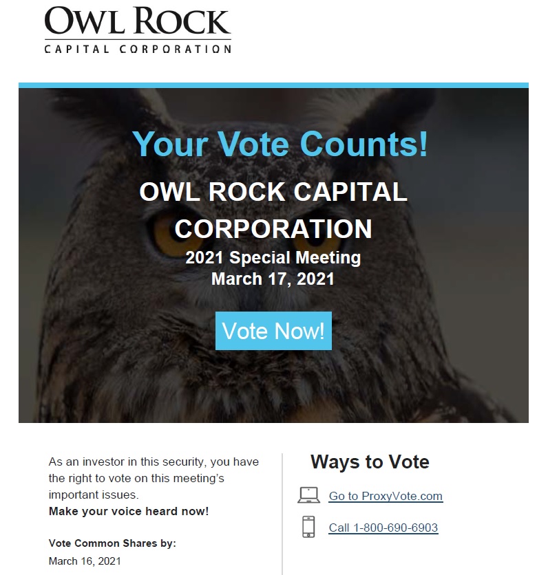 Re: IMPORTANT: Your vote is needed for the OWL ROCK CAPITAL CORPORATION Special Meeting